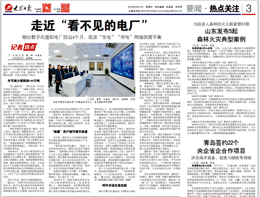 2023年11月22日,由东信达企业管理软件(深圳)有限公司开发建设的国内首个城市级数字化虚拟电厂——烟台市数字化虚拟电厂投入运行。运行近4个月来,虚拟电厂取得了哪些进展?记者日前进行了探访。